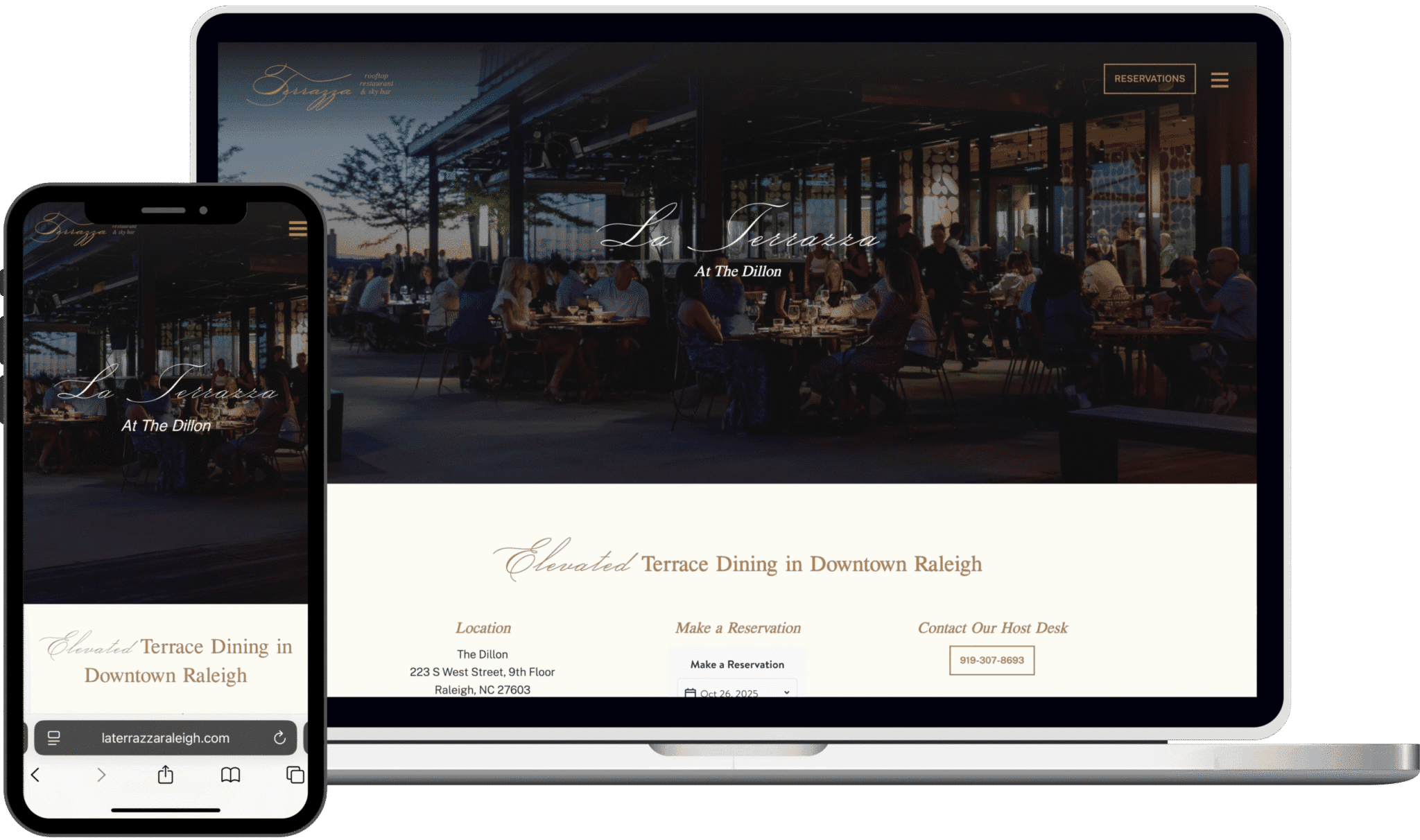 La Terrazza, a new rooftop restaurant under Umbria Hospitality Group, opened in May 2024 in downtown Raleigh, N.C. The objective was to create an elegant, mobile-friendly website that introduced the new brand, reflected the dining experience, and made it easy for guests to reserve a table.