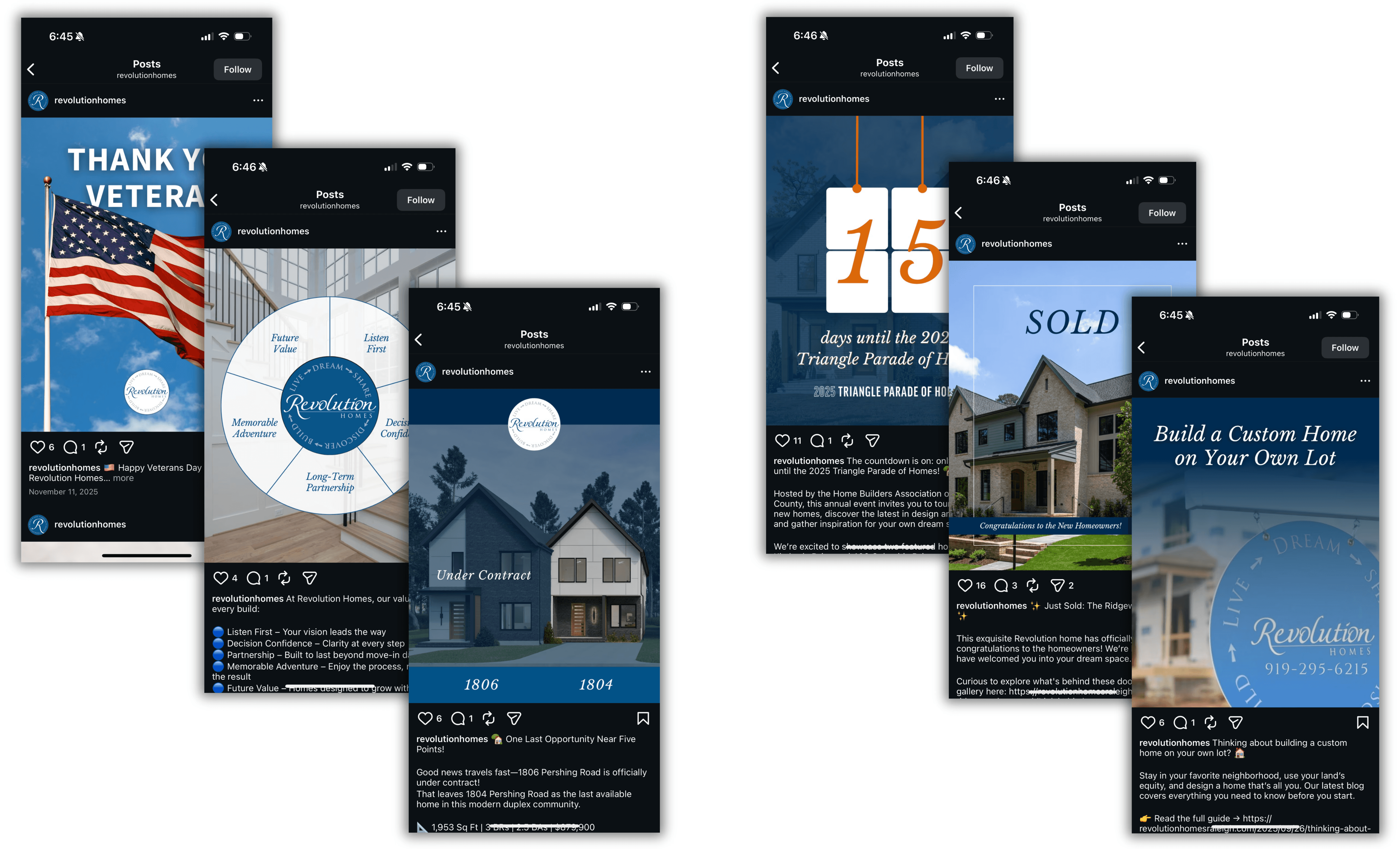 Revolution Homes needed a strong digital and print presence to promote the 2025 Triangle Parade of Homes and maintain ongoing audience engagement. As the sole designer, I created event materials and produced 3 posts/Reels per week year-round to reinforce brand visibility.